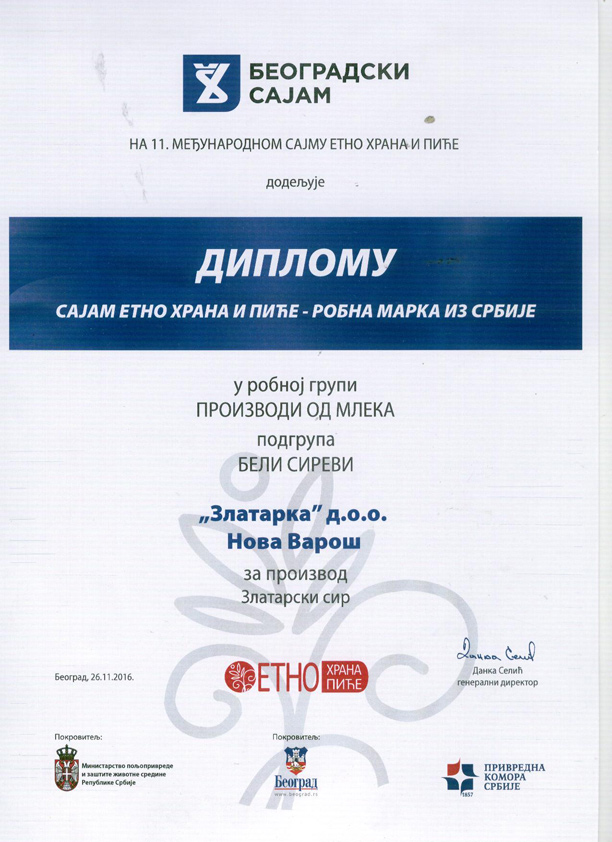 Млекара поседује сертификат TUV за HACCP и ISO 9001:2008.